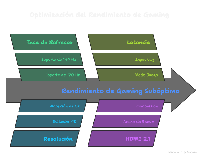 - VRR (Variable Refresh Rate): Sincronización Dinámica para una Imagen Fluida. La Tasa de Refresco Variable (VRR) es una tecnología crucial para eliminar el screen tearing (desgarro de la imagen) y el stuttering (tartamudeo). El VRR permite que la tasa de refresco del televisor se ajuste dinámicamente a la velocidad de fotogramas generada por la consola o la tarjeta gráfica. Existen diferentes implementaciones de VRR, incluyendo HDMI VRR, que forma parte del estándar HDMI 2.1 y es utilizado por consolas como Xbox Series X y PS5. También existen soluciones propietarias como G-Sync (Nvidia) y FreeSync (AMD), más comunes en el ámbito del PC gaming. Para gaming en consolas, HDMI VRR es generalmente suficiente. Tecnologías avanzadas como Low Framerate Compensation (LFC) intervienen cuando la tasa de fotogramas cae por debajo del rango de VRR, duplicando fotogramas para mantener la sincronización.