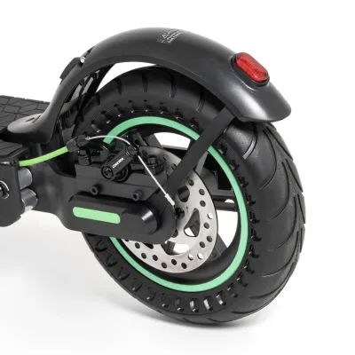 - Sistema de Frenos de Disco para Mayor Seguridad y Control: El sistema de frenos de disco en la rueda trasera proporciona una frenada eficiente y segura, incluso en condiciones climáticas adversas. Este sistema garantiza mayor control y confianza durante tus desplazamientos diarios.