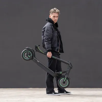 El Youin XL2 es un patinete muy ágil y fácil de conducir. Con ruedas antipinchazos de 10″, cuerpo de aluminio y suspensión trasera. Cuenta con un mástil más grueso y robusto y freno de disco para una frenada perfecta. Tiene una autonomía de hasta 30 kilómetros y soporta hasta 100 kg de carga máxima. Con pantalla extragrande para ver el velocímetro y el nivel de batería y una fijación de transporte más robusta que facilita su traslado una vez plegado.
